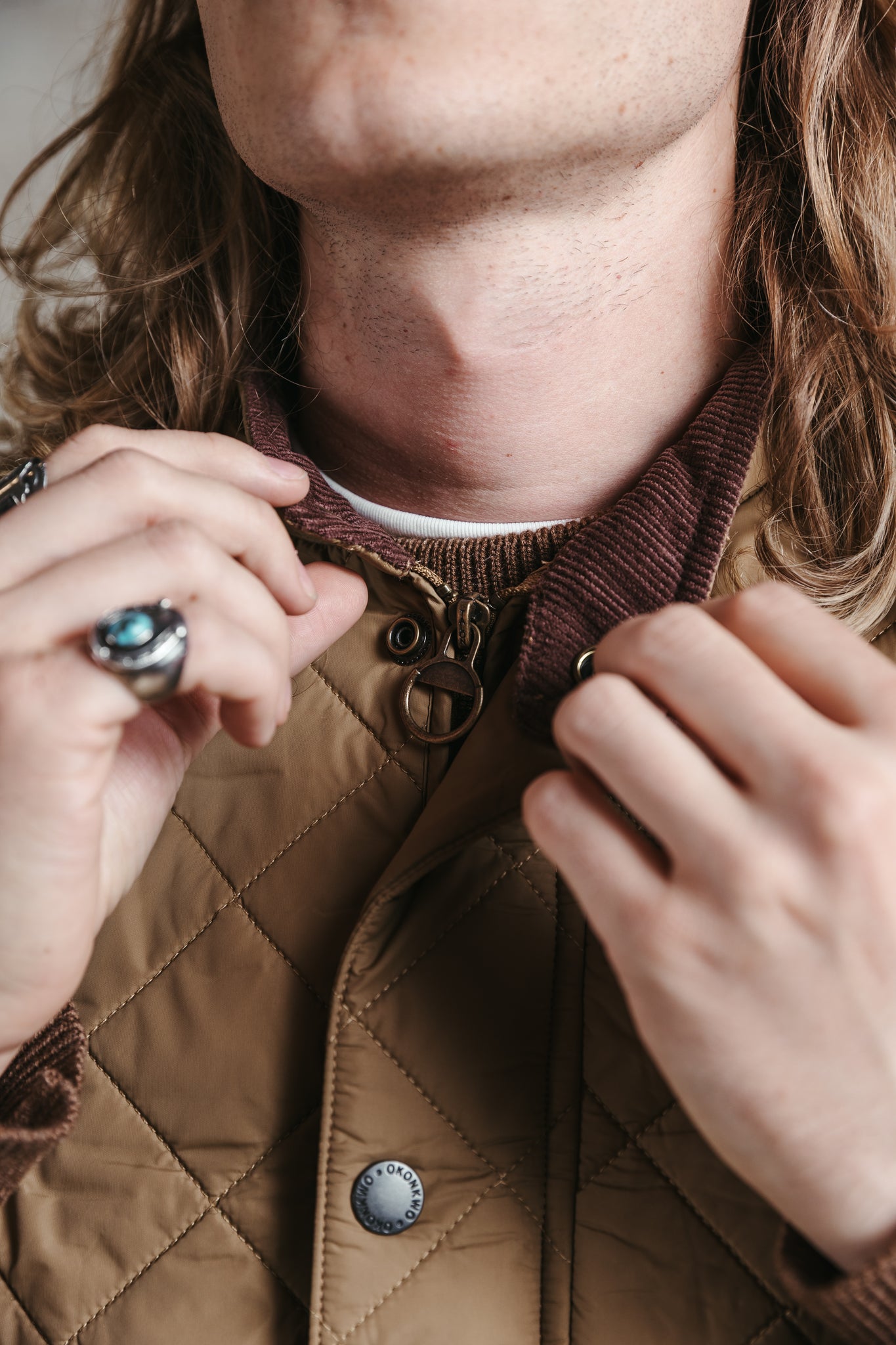 ✔️ Col droit boutonné en velours côtelé