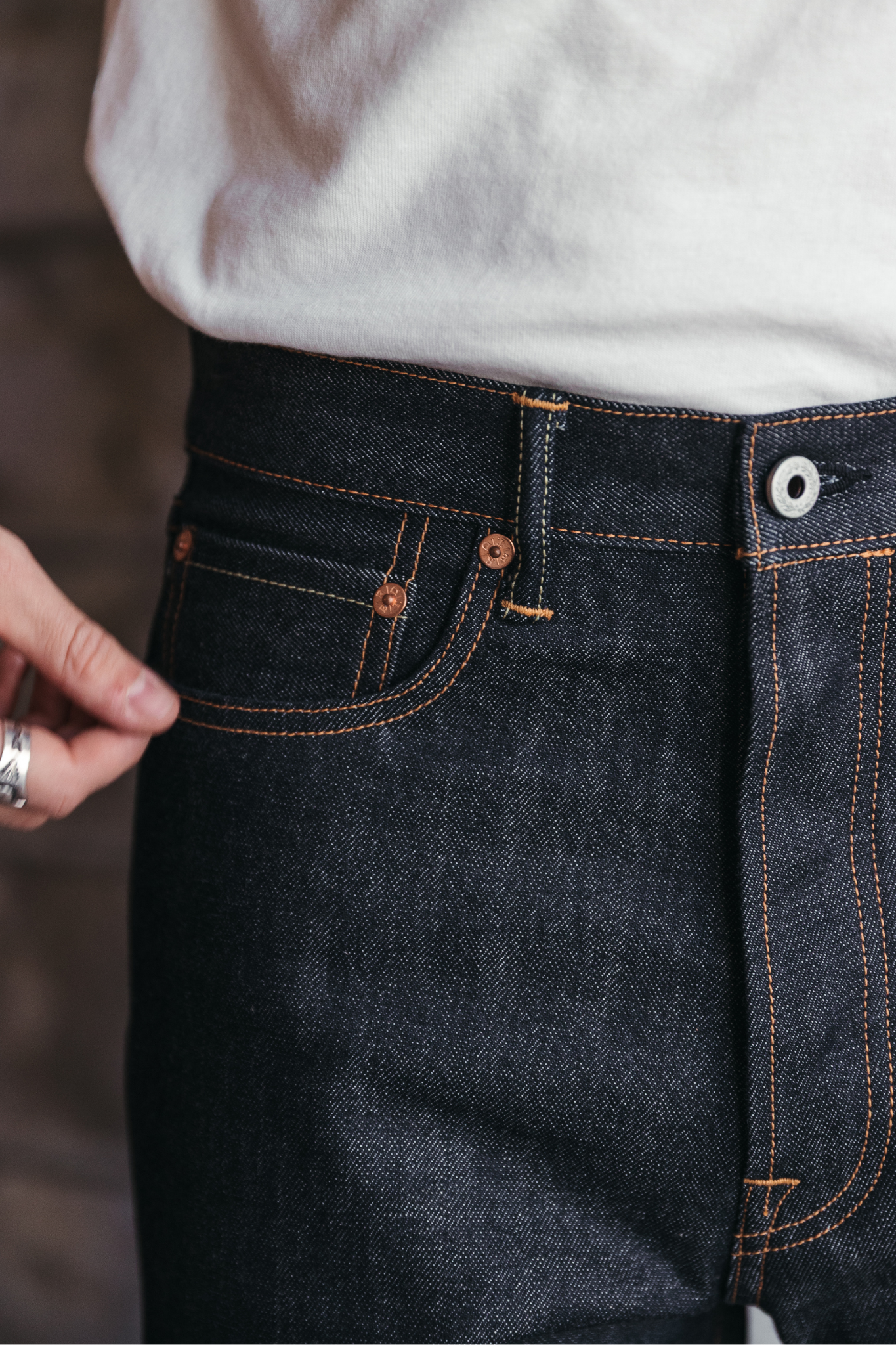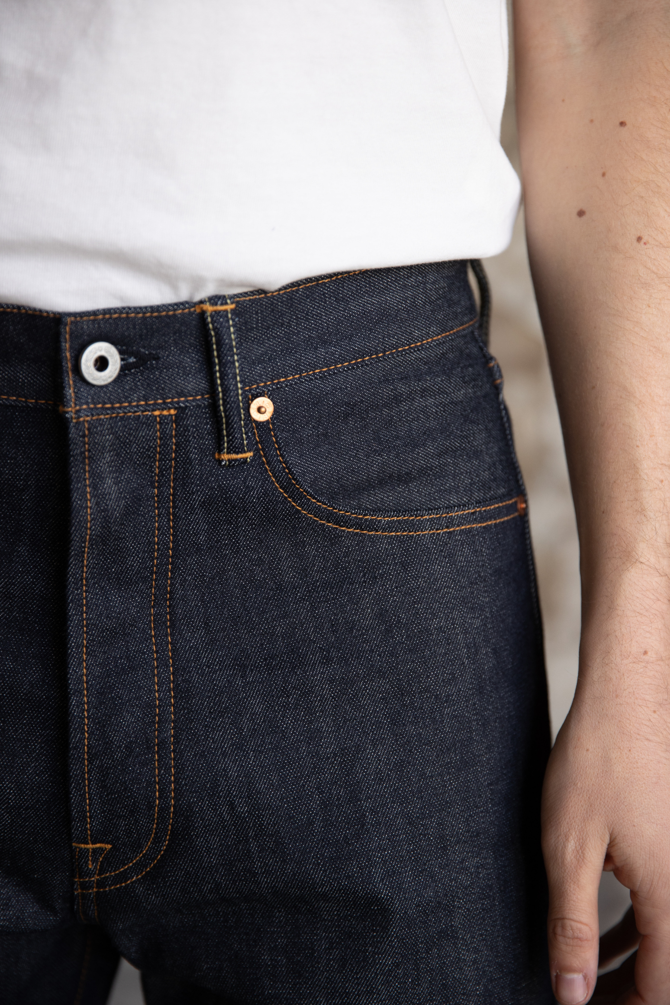 ✔️ Denim 100 % coton – toile selvedge brute 14 oz